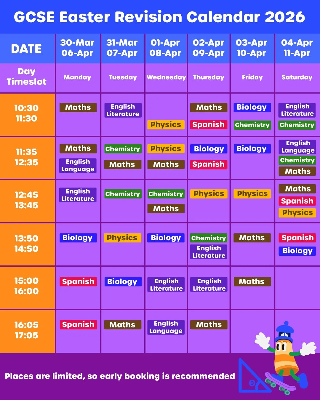 The full Easter revision timetable is published closer to the holiday period each year. Once available, it will be shown below.